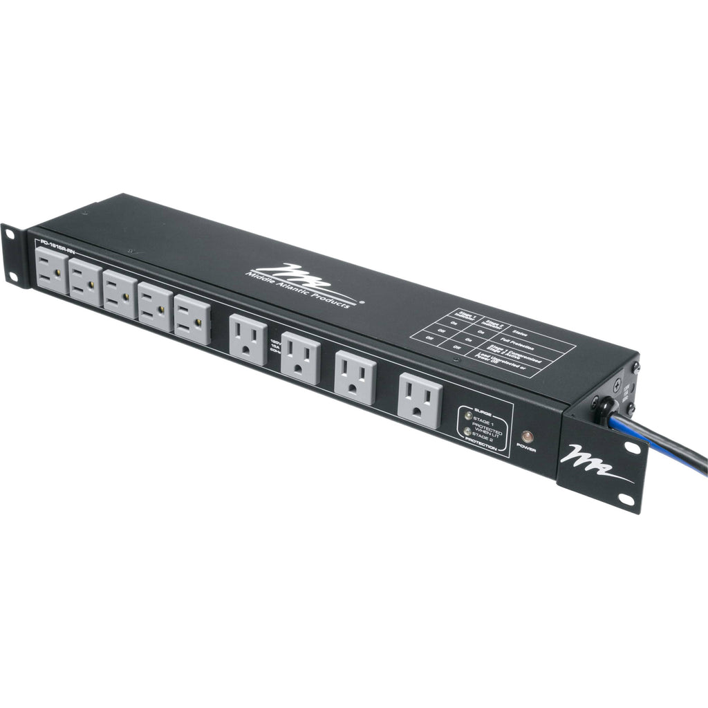 The Middle Atlantic PD-1815R-RN Multi-Mount Power is a 15 Amp rackmount power distribution unit designed to optimize space and efficiency in power management. The unit can be mounted horizontally/vertically due to its versatile design. With a shallow 4" (10.16cm) depth, it houses 18 outlets (10 front / 8 rear), which serve a variety of functions. Adverse effects of AC magnetic fields are reduced with the help of a 9' (2.74m), 14-gauge SignalSafe power cord. Reversible, adjustable mounting ears offer flexible installation options with 0/90 mounting.
