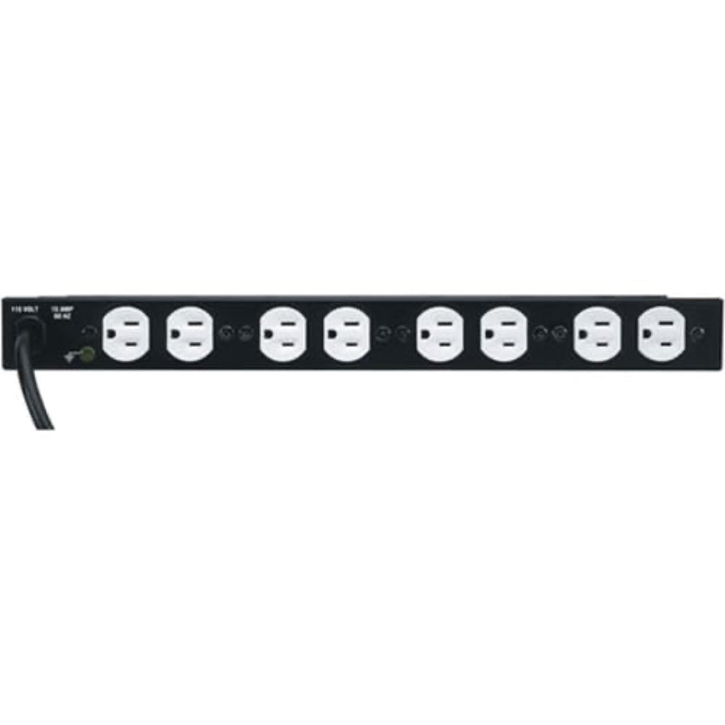 8 Outlet, Single 15 Amp Circuit, Surge/Spike Protected Rackmount Power Distribution, Black Powder Coat Finish