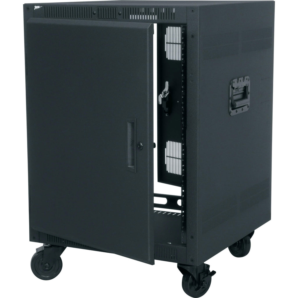 Specify a PTRK series rack when rugged portability is essential. Smooth rolling 4" casters, advanced cable management and secure doors make this rack ideal for serving a variety of applications.