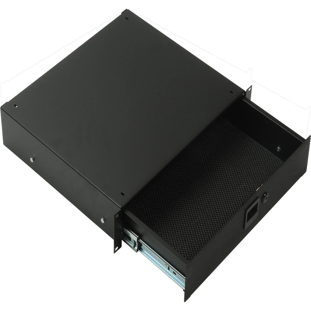Middle Atlantic Rack Drawers are made for heavy use. Constructed of steel, this fully enclosed two-space drawer has full extension ball bearing slides extending 14" to minimize friction and the usual wear and tear. It also carries a three-year warranty. -