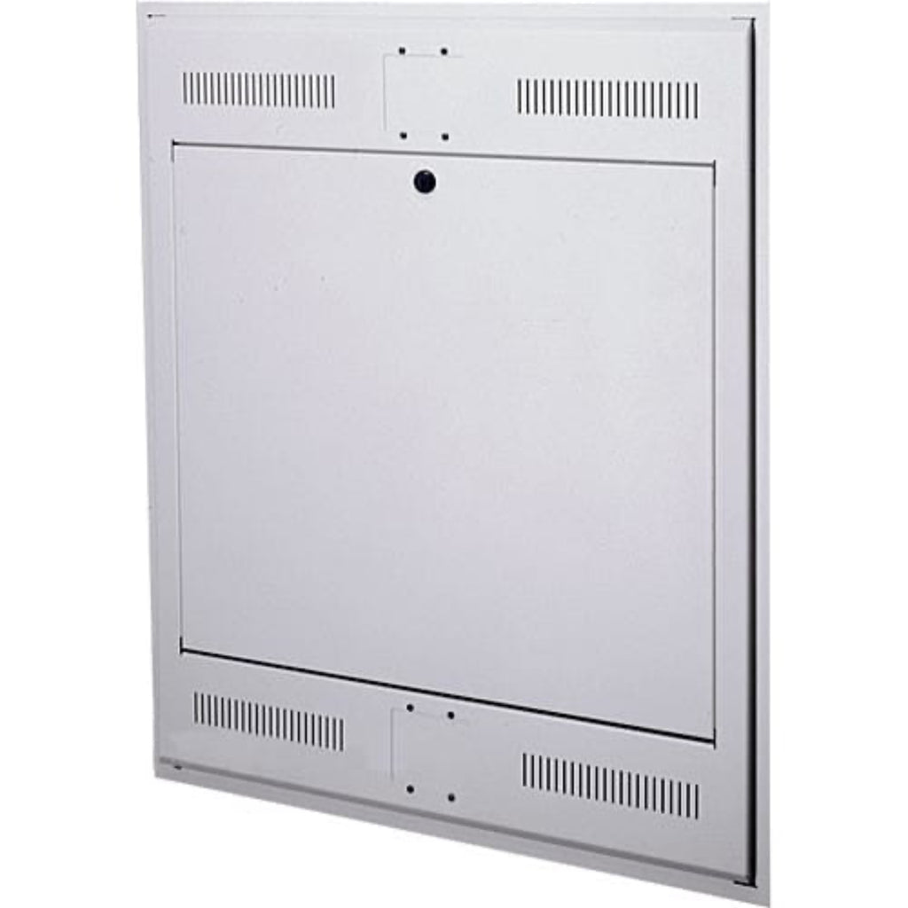 Middle Atlantic's 3U Tilt-Out 20"D Wall Rack with Flush Mount (Putty) makes an optimal low-profile wall storage for engineering, security, or announcement equipment controls. This lockable, inconspicuous cabinet offers a 5.25" (3U) racking height and a 20" maximum usable depth. A simple installation is all it takes and you're ready to tuck away any mid-size high-value security or operation devices, with ease. This model has a 18-Degree tilt-out operating position and a 105-Degree service opening position, and this rack includes a 3-space rackrail on the inner wall, which makes it easier to use with rackmount equipment. The outside structure measures approximately 25 x 30 x 6" (WxHxD).