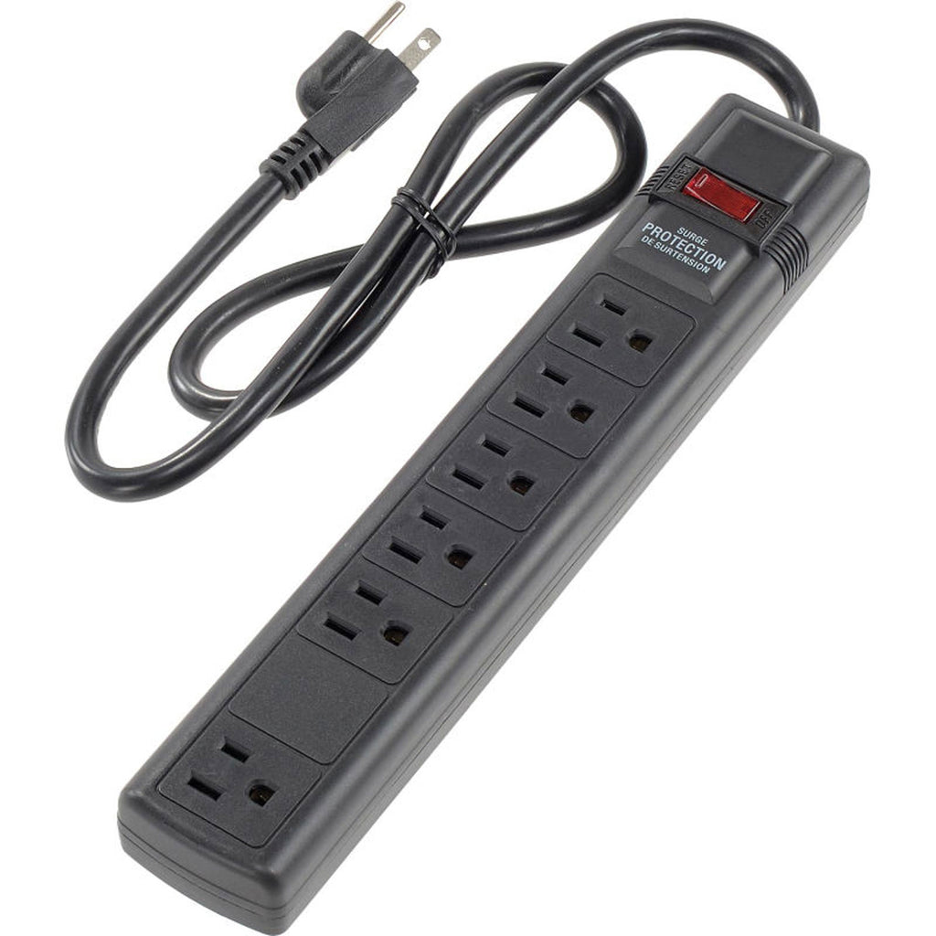 6 Outlet Surge Protector Strip with 3-foot Cord, Black