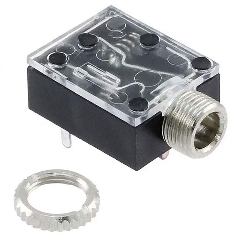 The 35RAPC4BH3 is a 3.5mm Mono and Stereo PC Board Horizontal-mount Jack with black PBT housing, nickel-plated brass bushing, tin-plated phosphor bronze springs and a clear polycarbonate cover. The compact design and an easy of installation onto a PCB make this an ideal solution.