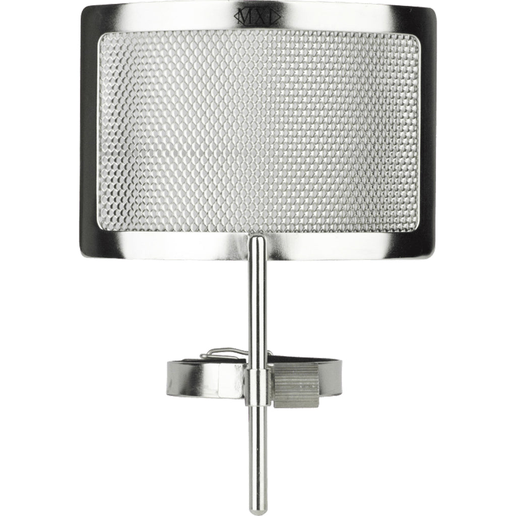 Universal metal mesh pop-filter for reducing plosives and P-pops during vocal performance.