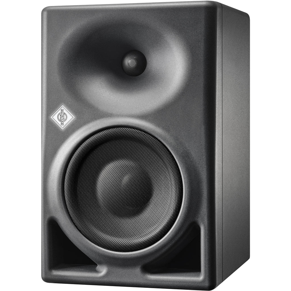 The KH 150 is a powerful bi-amplified studio monitor with reference-class performance. Its 6.5" woofer in a bass reflex cabinet provides stunning low end and high SPL capability with undiminished clarity. DSP controlled electronics ensure linear phase response and allow for room-adaptive calibration via Neumann's revolutionary MA 1 Automatic Monitor Alignment.