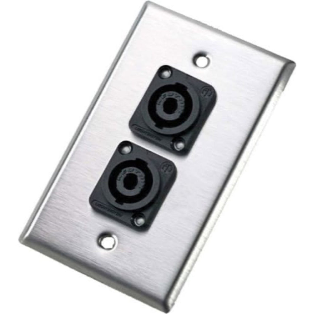 Neutrik model 204L dual 4-Pole speakON receptacles with stainless steel wallplate.