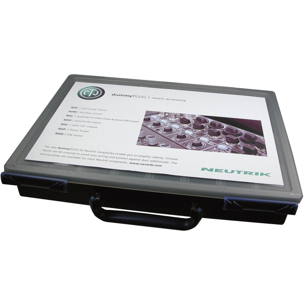 The dummyPLUG case includes a mixed assortment of dummyPLUGs containing a practical number of each dummyPLUG packed in a handy portable case. The dummyPLUGs for chassis connectors enable you to simplify cabling. Unused inputs can be covered to avoid miss wiring and protect against dust additionally.