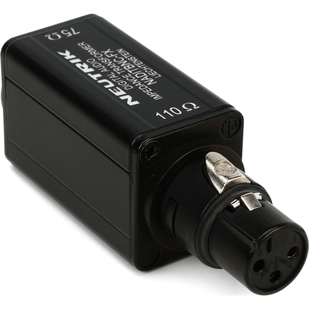 Female XLR cable end 110 Ω input - female BNC 75 Ω output. Interface balanced and coaxial lines.