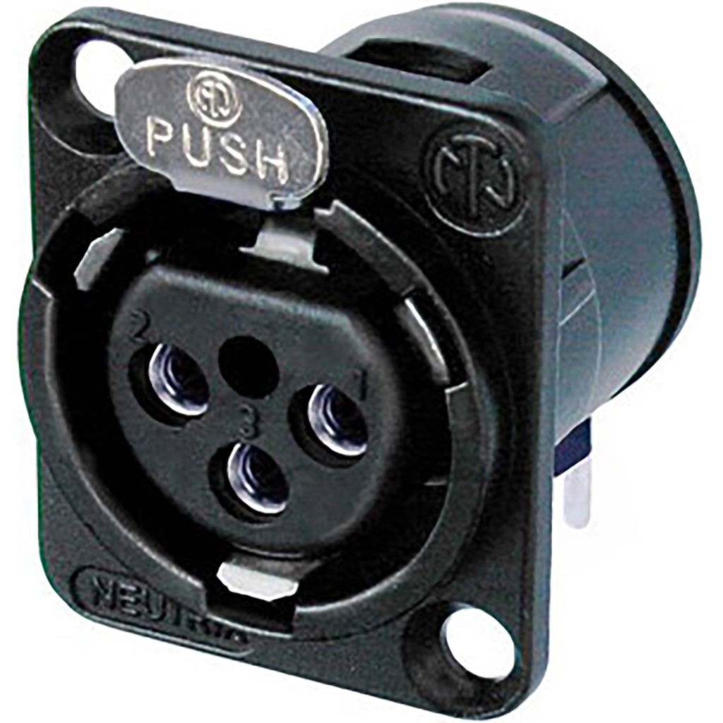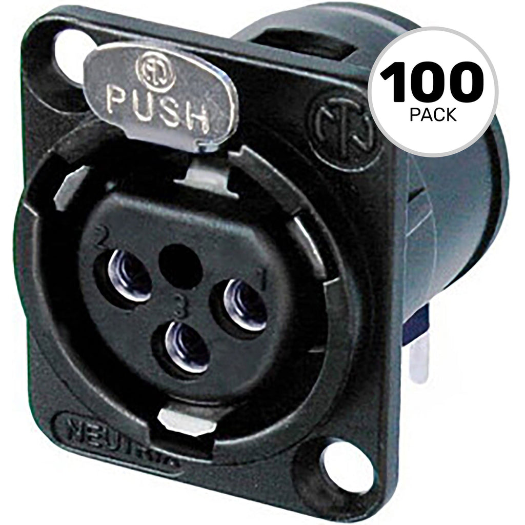 Female 3-Pin XLR Receptacle, D Series, Horizontal PCB Mount, Black Metal Housing, Silver Contacts - Full Box of 100 Connectors