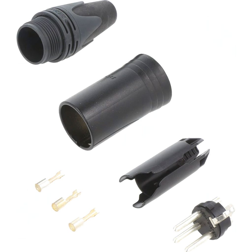 Male 3-Pin XLR Cable End Connector with Crimp Termination, XX Series, Black Housing, Silver Contacts - Full Box of 100 Connectors