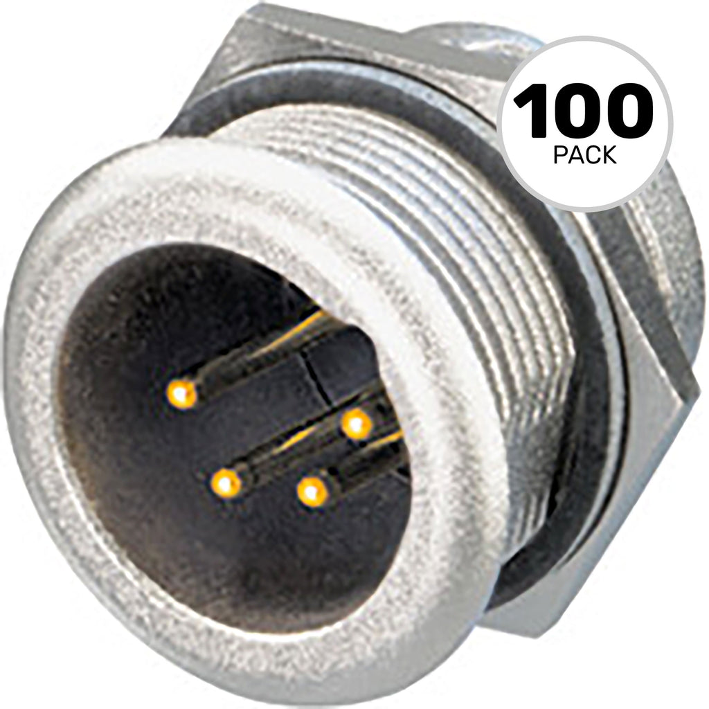 Male 4-Pin XLR Outdoor Use Receptacle, MPR-HD Series, Solder Cups, Nickel Housing, Silver Contacts - Full Box of 100 Connectors