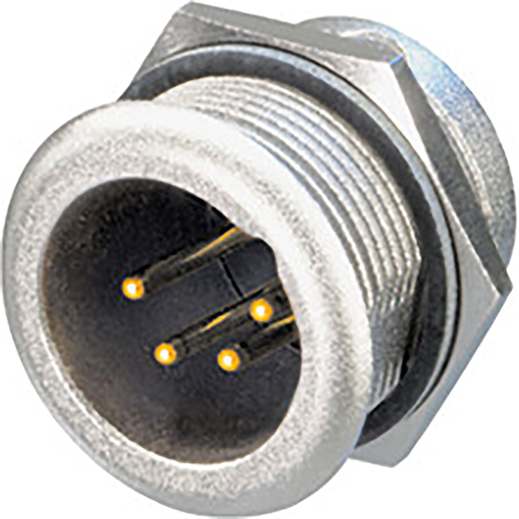 Heavy duty sealed male 4-pole XLR chassis connector for outdoor use. Dust and water ingress sealing to IP65 rating is achieved by using HD cable connector (NC4FX-HD).