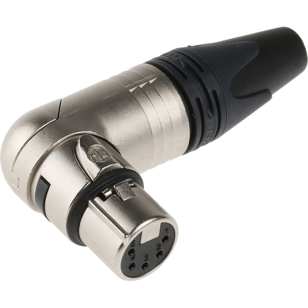 Female 5-Pin XLR Right Angle Cable End Connector, RX Series, Nickel Housing, Silver Contacts - Full Box of 50 Connectors