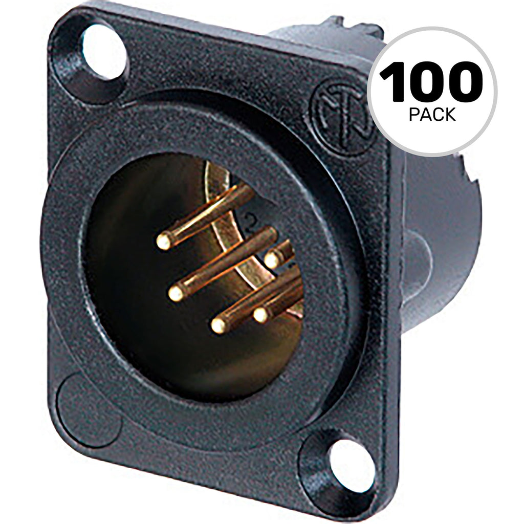 Male 5-Pin XLR Receptacle, DLX Series, Solder Cups, Black Housing, Gold Contacts - Full Box of 100 Connectors