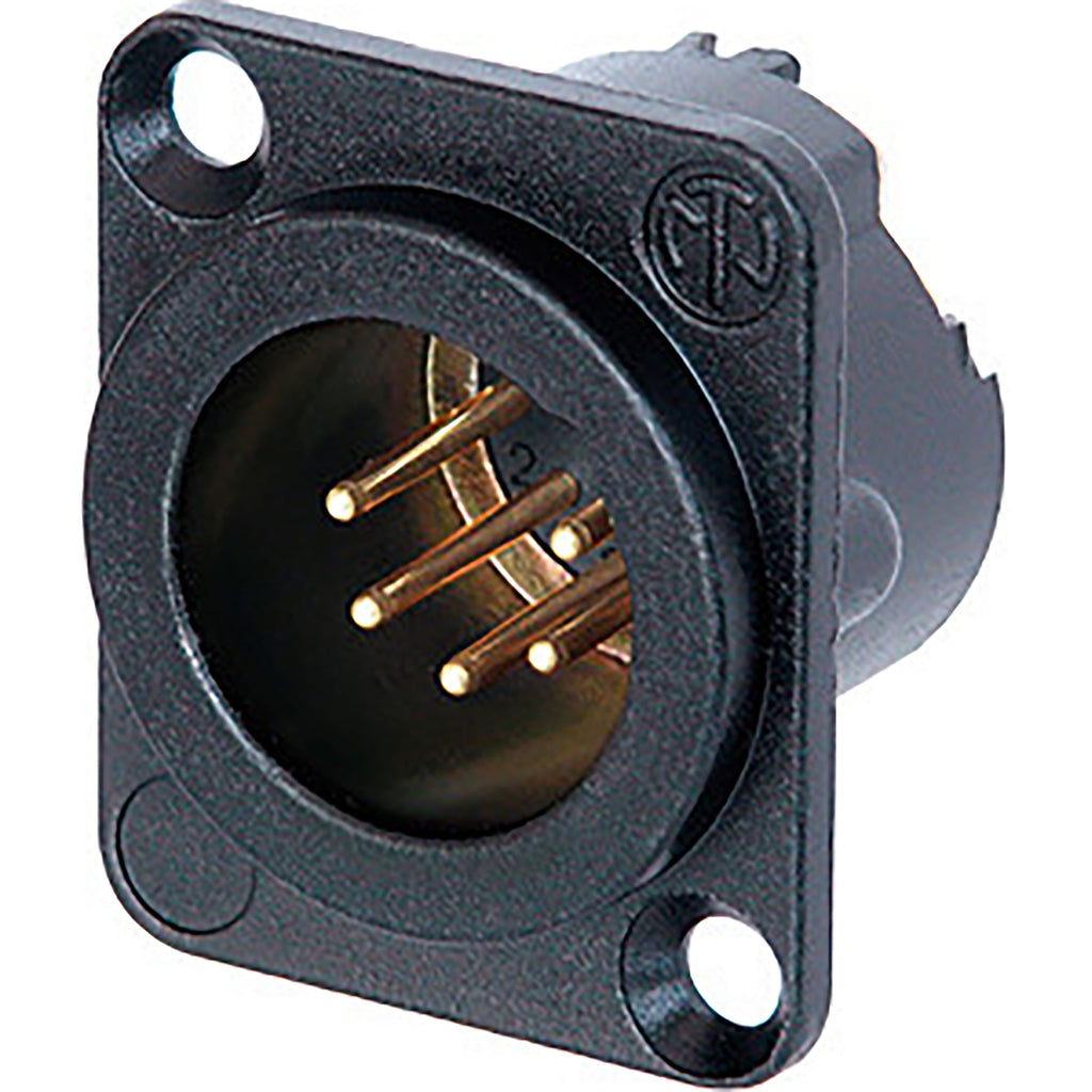 5 pole male receptacle, solder cups, black metal housing, gold contacts