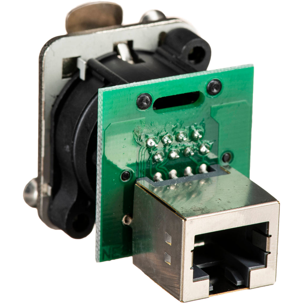 The etherCON Series is a ruggedized and lockable RJ45 connector system, optimized for pro audio, video and lightning network applications. The chassis connectors are shaped to fit into standardized panels out of the entertainment industry.