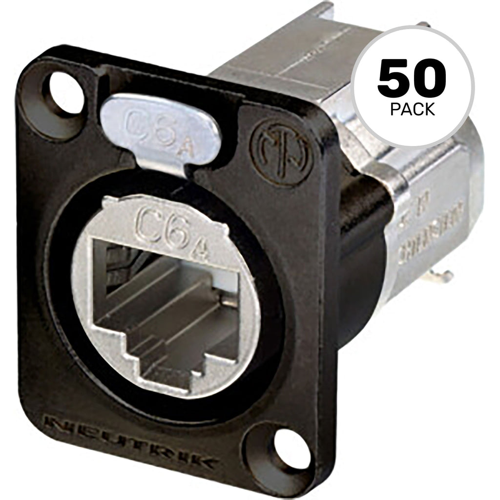 D-Shape Cat6a Shielded Panel Mount Jack - Black - Full Box of 50 Connectors