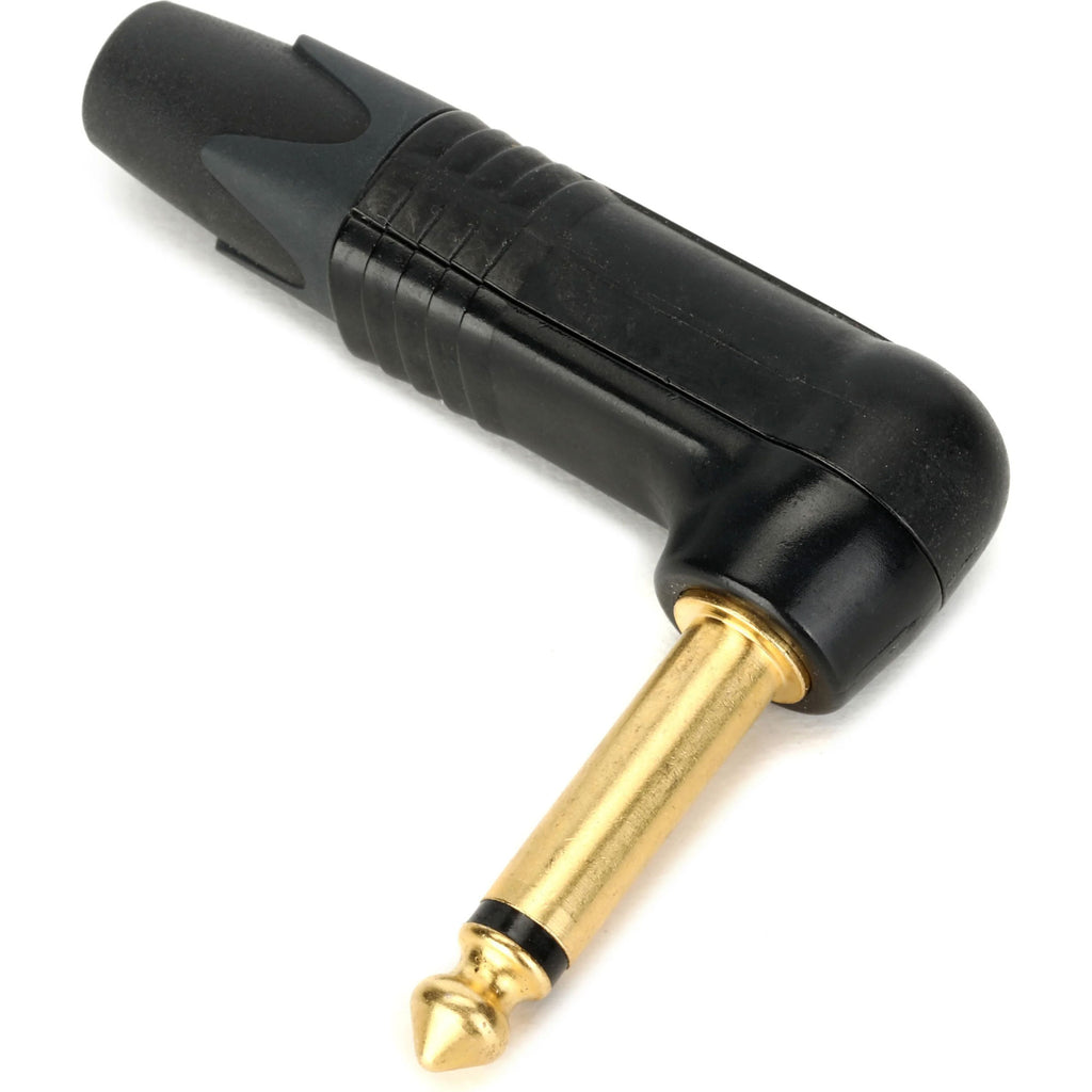 2 pole 1/4" professional right-angle phone plug, gold contacts, black shell
