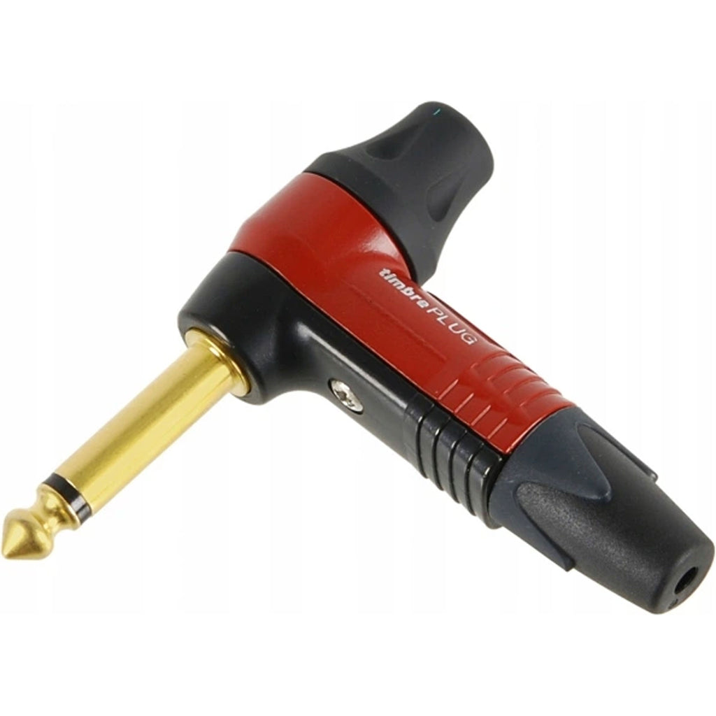 Male 1/4" Right-Angle TS Mono Phone Plug with 4 Step Timbre Knob, Cable End, Red Housing, Gold Contacts - Full Box of 25 Connectors