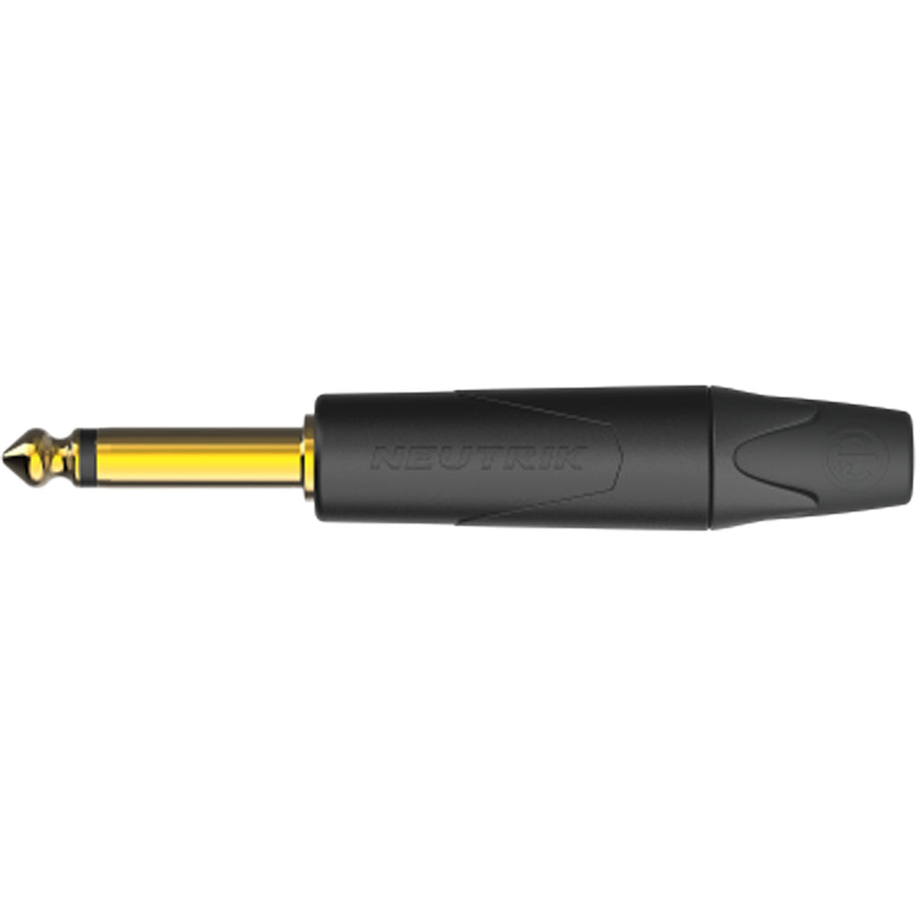 Male 1/4" TS Mono Phone Plug, Cable End, Black Housing, Gold Contacts - Full Box of 100 Connectors