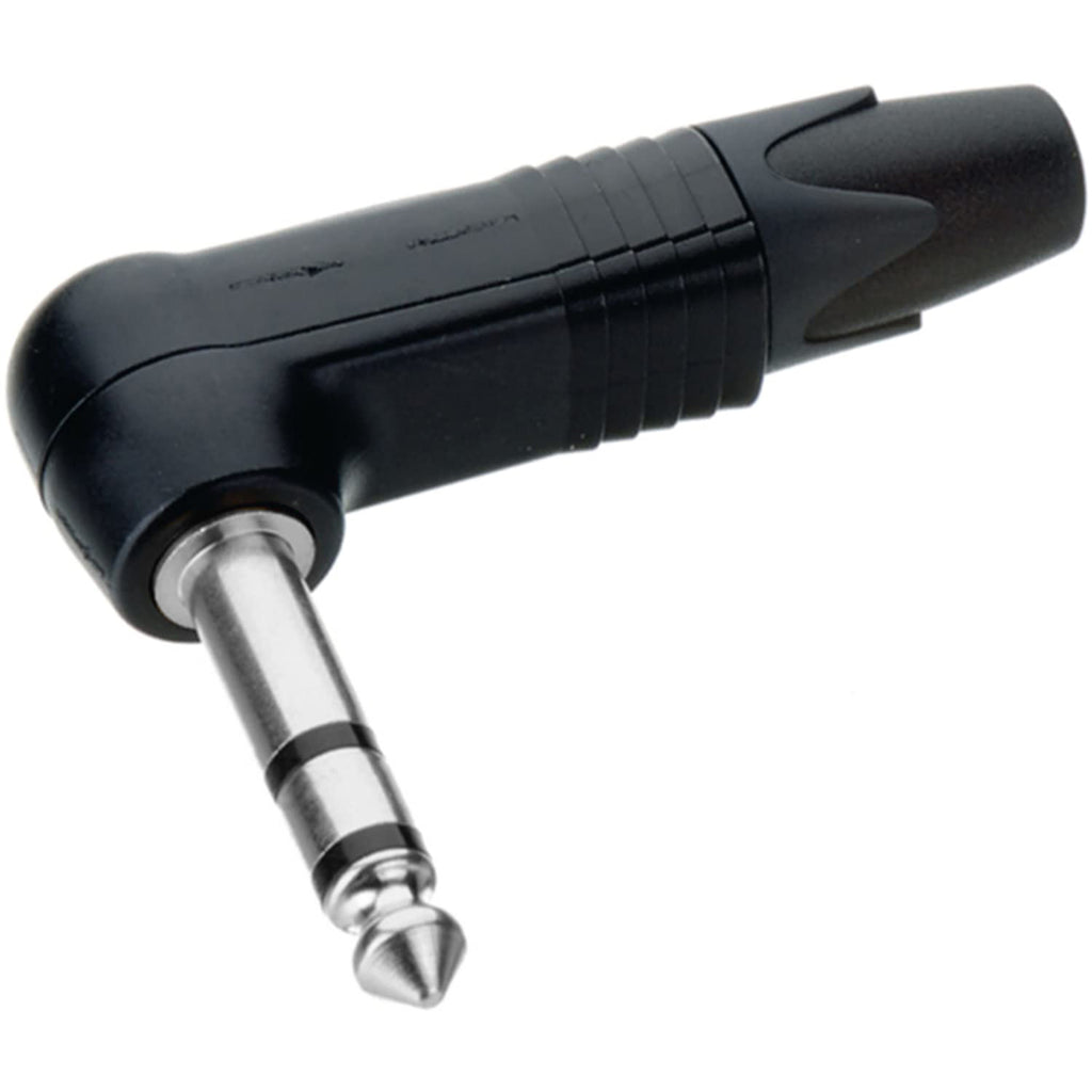 3 pole right-angle 1/4" professional phone plug, silver contacts, black shell