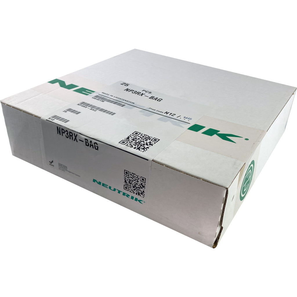 Male 1/4" Right-Angle TRS Stereo Phone Plug, Cable End, Black Housing, Silver Contacts - Full Box of 25 Connectors