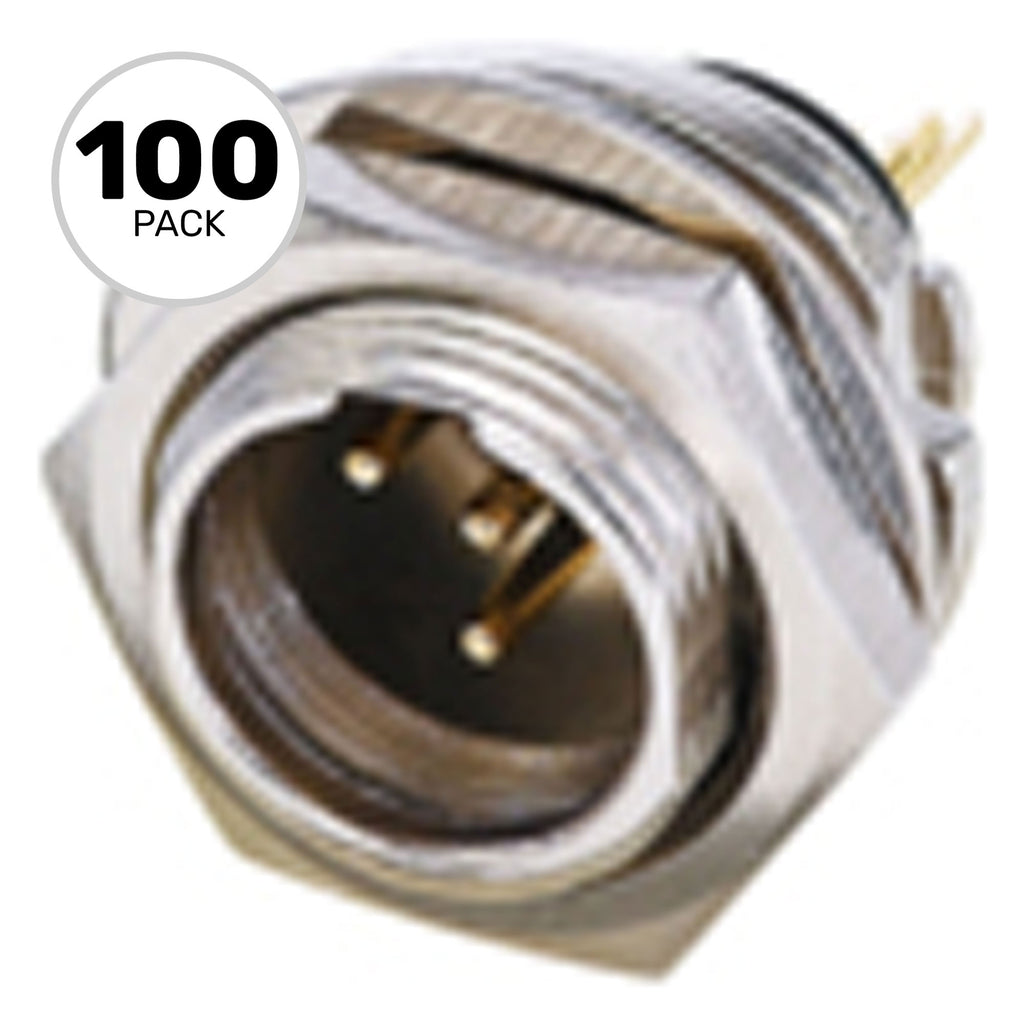 Rear-Mountable 4-Pole TINY XLR Male Chassis Connector, Nickel Housing, Gold Plated Contacts, Max. Panel Thickness: 3mm - Full Box of 100 Connectors