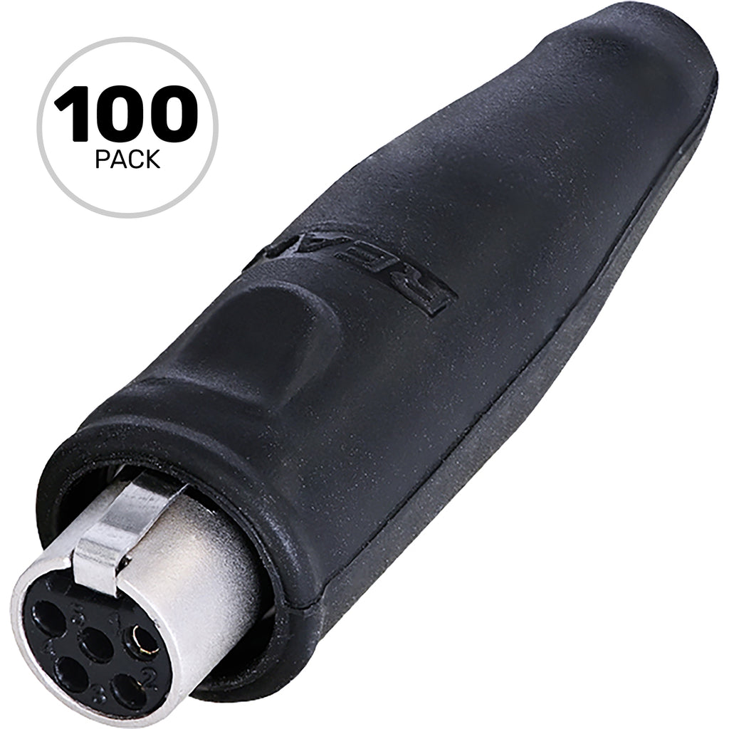 Water-Resistant Female 5-Pole Mini-XLR Cable Mount Connector, Black Housing, Gold Contacts - Full Box of 100 Connectors