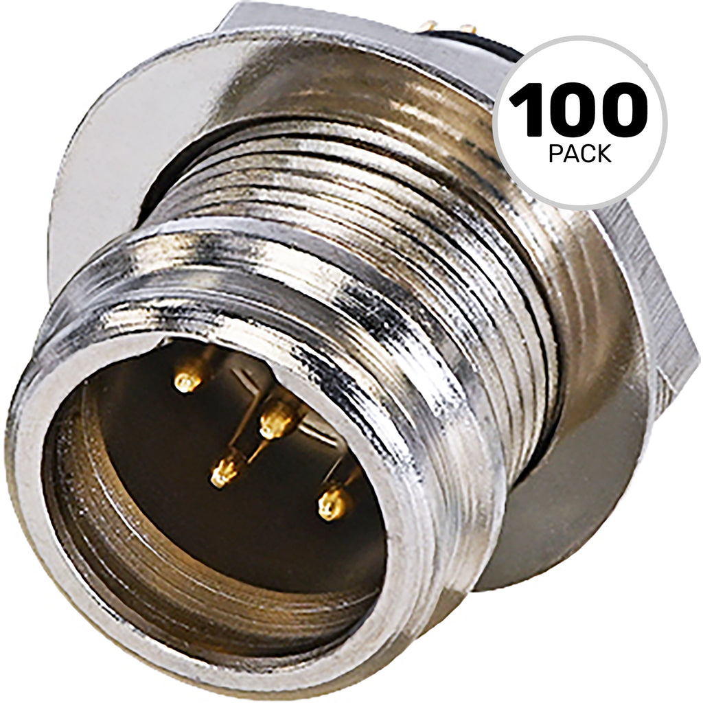 Front-Mountable 5-Pole TINY XLR Male Chassis Connector, Nickel Housing, Gold Plated Contacts, Max. Panel Thickness: 6mm - Full Box of 100 Connectors