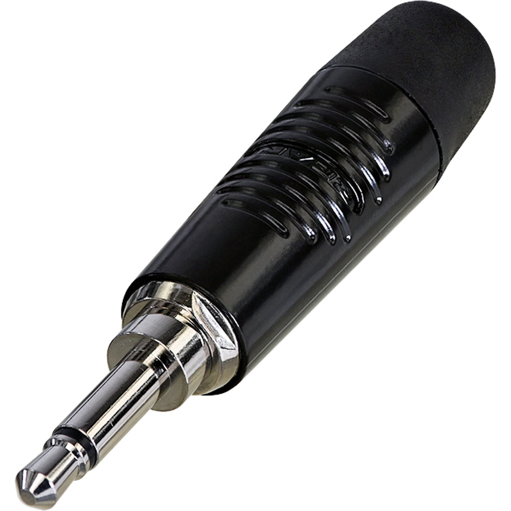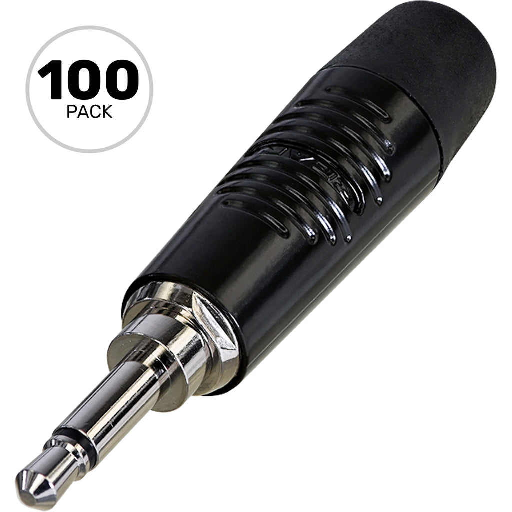 Male 1/8" (3.5mm) TS Mono Plug Outlet, Cable End, Black Housing, Silver Contacts - Full Box of 100 Connectors