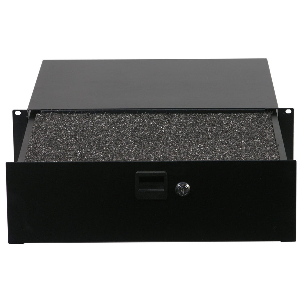 Accessory Rack Drawer w/ Diced foam - 3 space (5.25 in.) high. Great for storing Hard drives, Mics, computer interfaces (Serato, Torq, etc) and other related items.