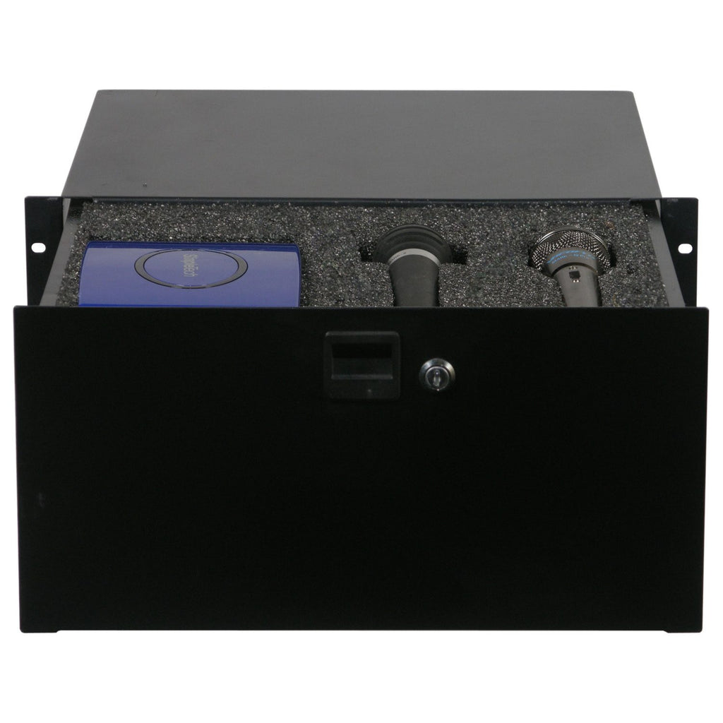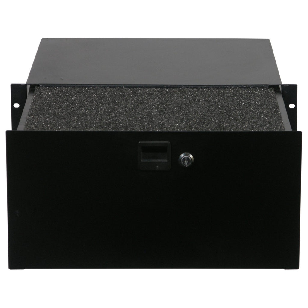 Accessory Rack Drawer w/ Diced foam - 5 space (8.75 in.) high. Great for storing Hard drives, Mics, computer interfaces (Serato, Torq, etc) and other related items.