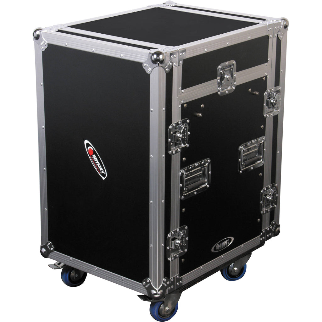 Our ATA Combo Racks give you the best of both worlds. Mount mixers and controllers on top for convenient access and all other essentials below. Each features heavy-duty rubber feet (non-wheeled versions), spring-loaded handles, and recessed hardware. "W" versions feature heavy-duty casters on a dolly plate (2 with sure stop brakes) while "DLX" versions feature lids that double as side mount workstation tables.