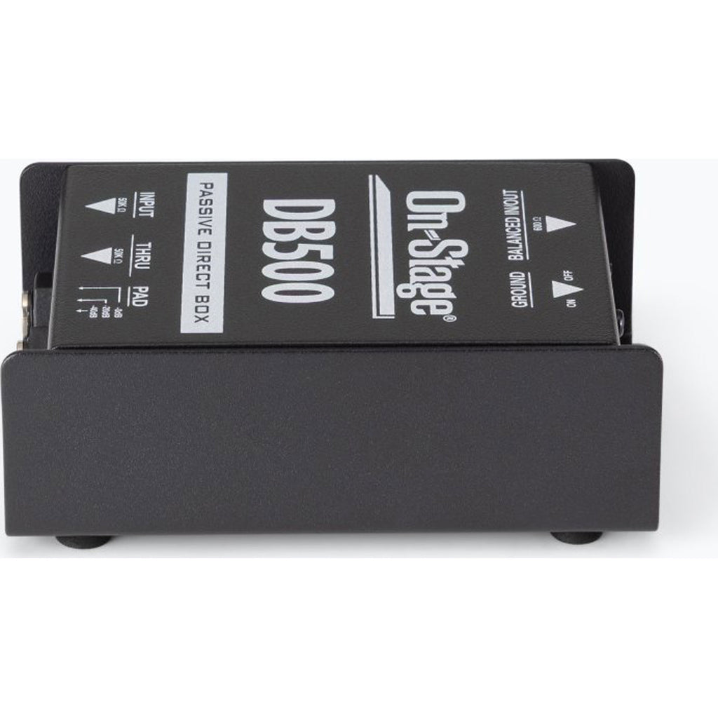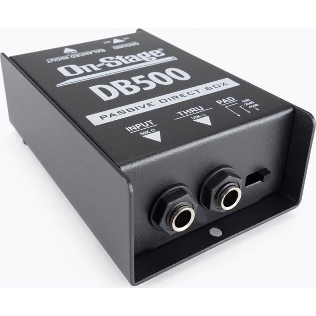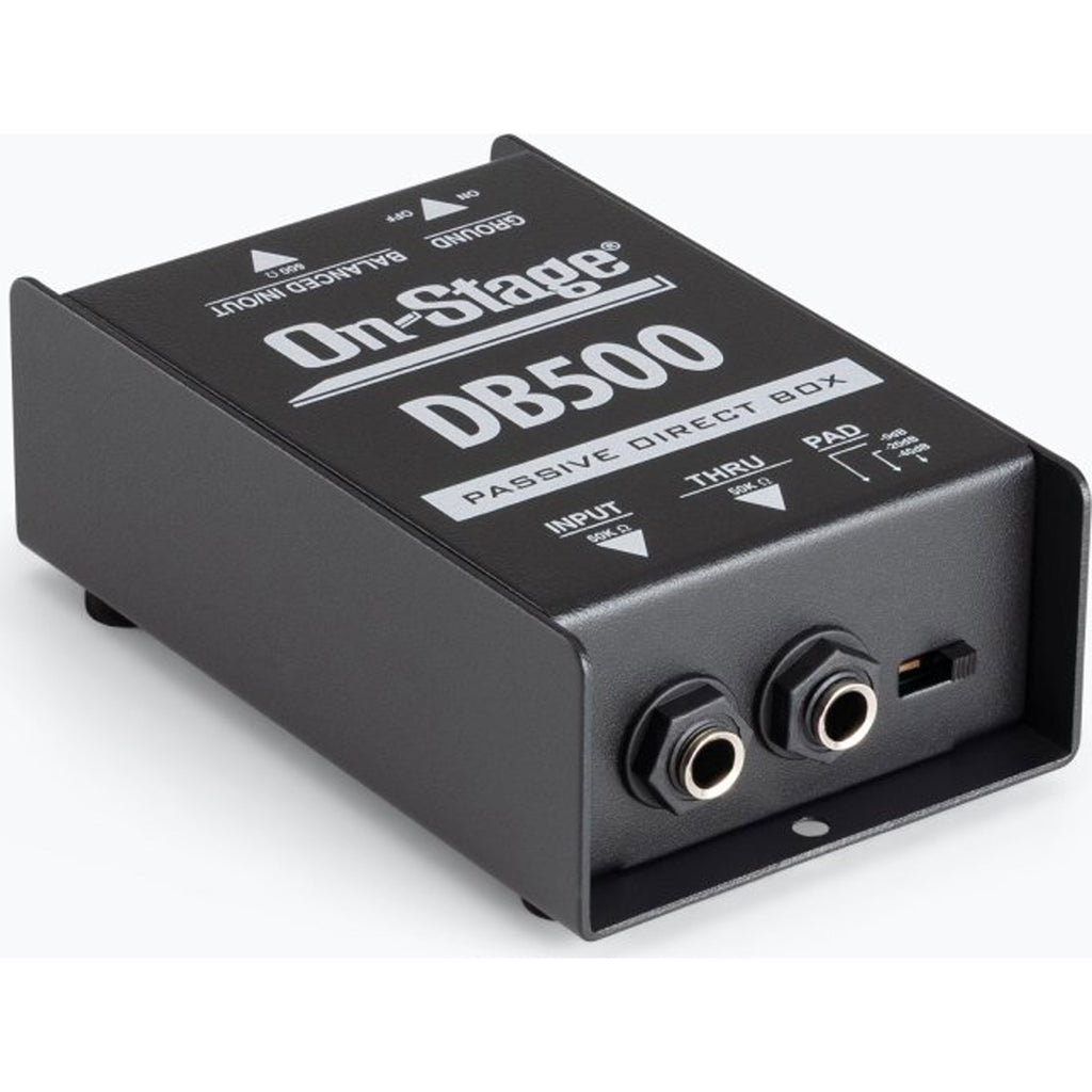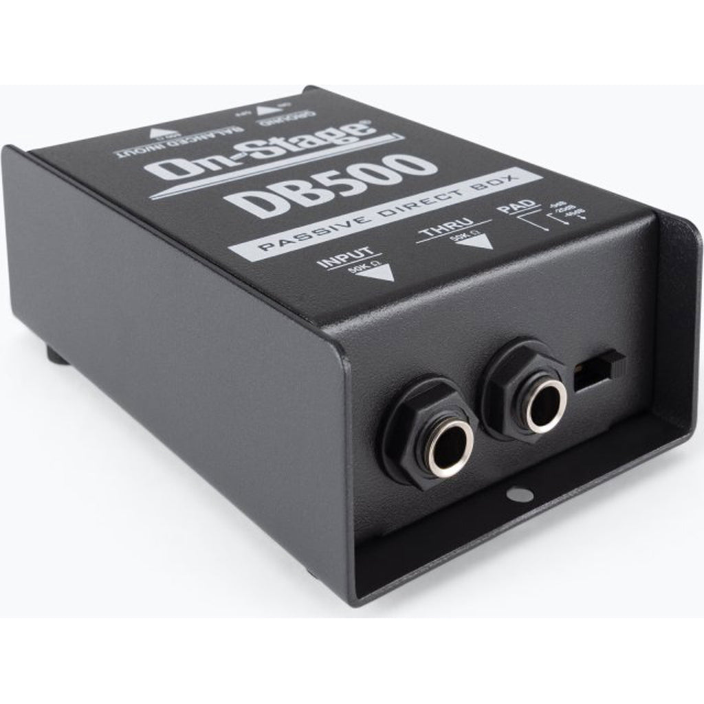Our DB500 Passive DI Box converts any high-impedance 1/4" source to a low-impedance XLR signal ready to send via a long cable run to a mixer or PA system. Features include low-distortion passive circuitry that doesn't require power, a -20 dB or -40 dB pad switch to prevent clipping, a ground-lift switch to defeat ground-loop hum, and a throughput connector to pass unaltered signal to a stage amp. Its heavy-duty metal enclosure protects the internal components and ensures reliable performance.