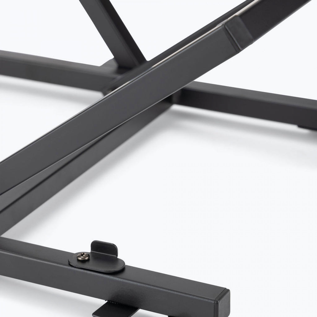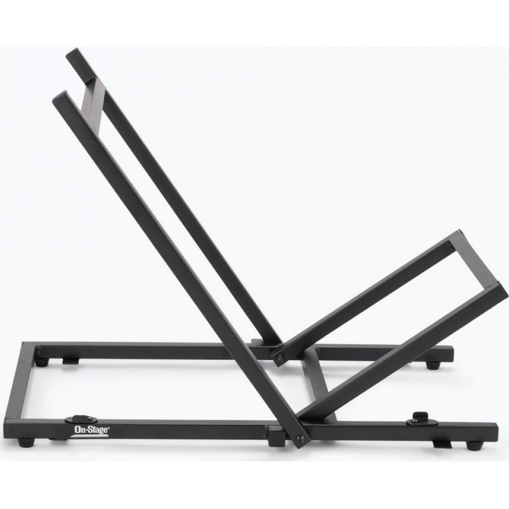 Our RS6000 Foldable Tilt-Back Amp Stand angles an amp speaker upward to direct sound toward the listener while reducing floor reflections. The heavy-duty frame holds an amp weighing up to 120 lb securely in place and rests on nonslip feet that reduce vibrations. Light-weight and portable, the stand folds flat and locks in the folded configuration for convenient, compact storage and transportation.