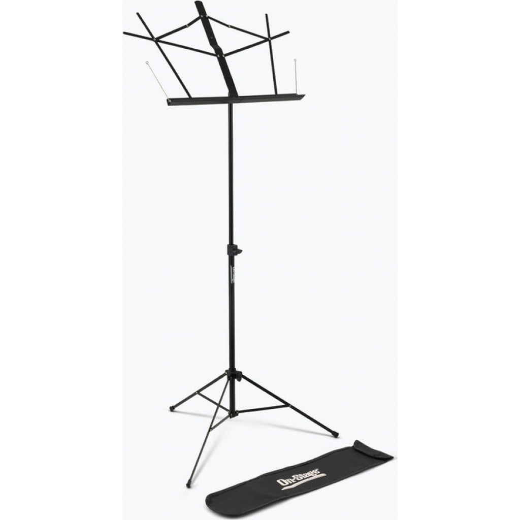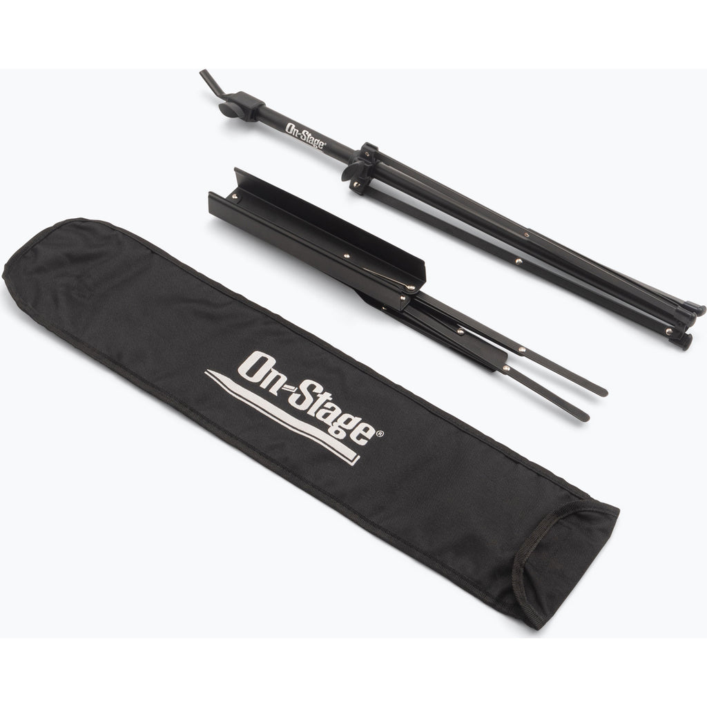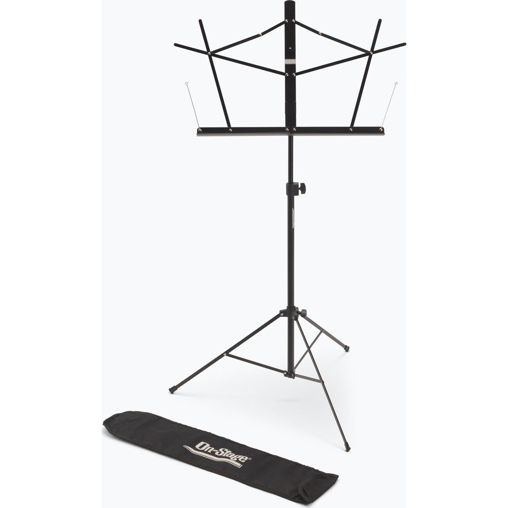Our SM7022BB Detachable Sheet Music Stand with Bag delivers stable performance in a portable package. The adjustable height and tilt angle enable positioning for ergonomic viewing from a sitting or standing position. To reduce page turns, it displays three pages of sheet music side by side and secures them in place with fold-out arms. The bookplate and base detach from each other and both pieces fold flat for efficient storage and transportation. A protective bag with a hook-and-loop closure and a shoulder strap is included for hands-free carrying.