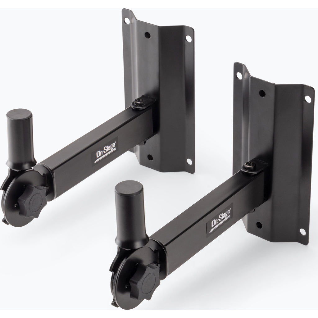 Our versatile SS7322B Adjustable Wall-Mount Speaker Bracket mounts speakers to walls-no need for a stand on the floor. For precise sound direction, this bracket positions speakers facing either straight ahead or at an adjustable downward angle while the hinged support arm enables swiveling 30° side to side. Its heavy-duty construction keeps speakers properly balanced for reliable placement.