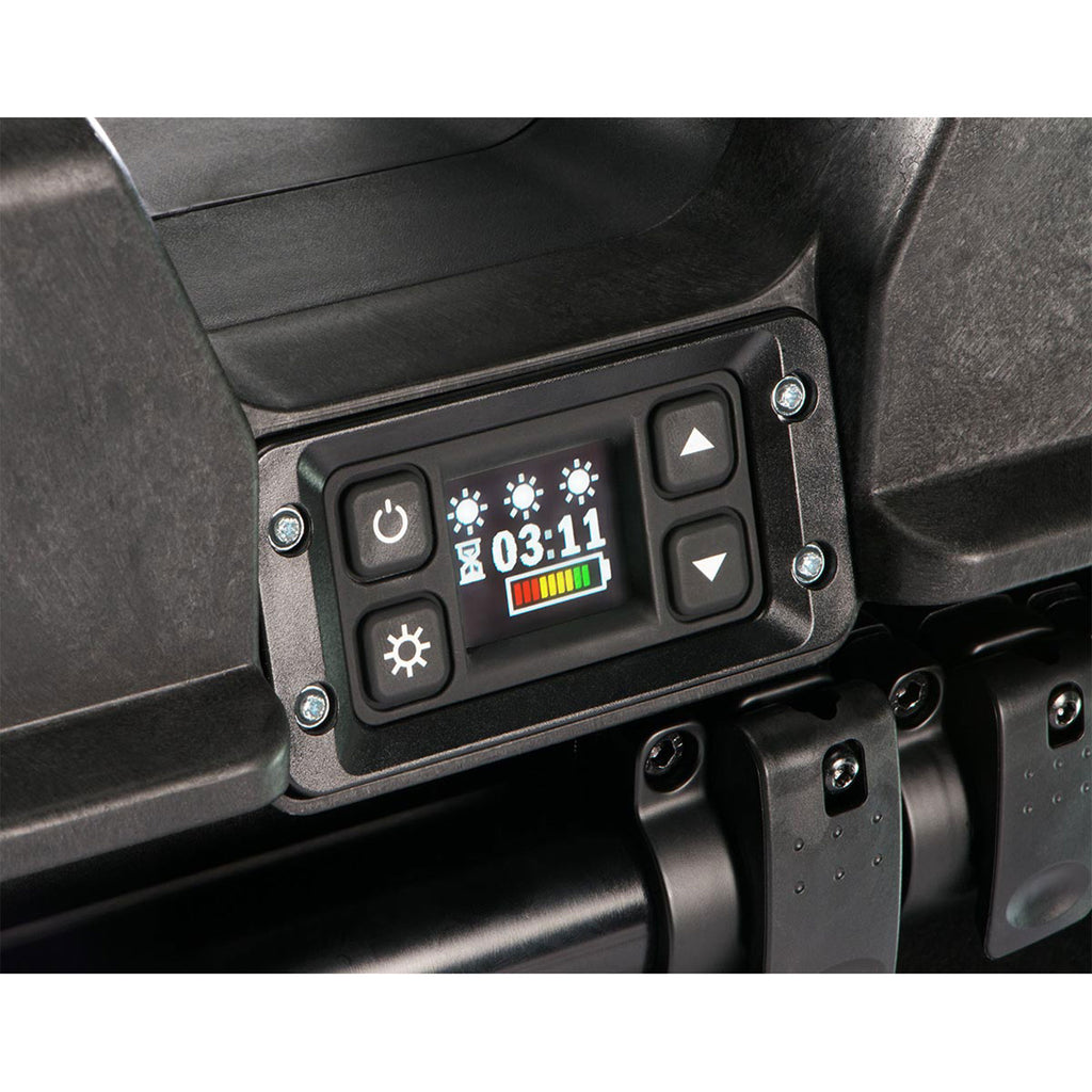 The 9490 Remote Area Lighting System from Pelican is a self-contained, rechargeable, battery-powered light source with a multi-position telescoping mast that reaches a height of 6 feet and is topped with a 10-LED head that pivots 340° to precisely place the 125° angle beam. With a 6000-lumen maximum output and up to 24 hours of continuous runtime; it provides a convenient alternative to generator-powered lights. An Intelligent Control system allows for variable light output levels from 1 to 100% power, and calculates and displays current battery life, allowing the user to regulate the intensity of the light and choose the desired run time. For quick use, there are three preset output levels: 1500 lumen, 3000 lumen, and 6000 lumen. Remote control operation is supported via a free app for iPhone and connects via Bluetooth to give full control of on/off switching and variable output selection.
