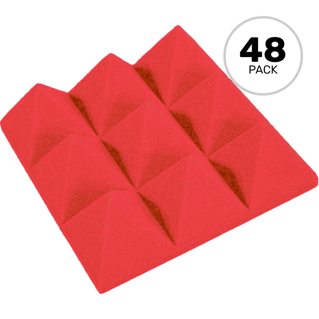 Red Colored Acoustic Foam Tile - Pyramid 12" x 12" x 4" - 48 Pack