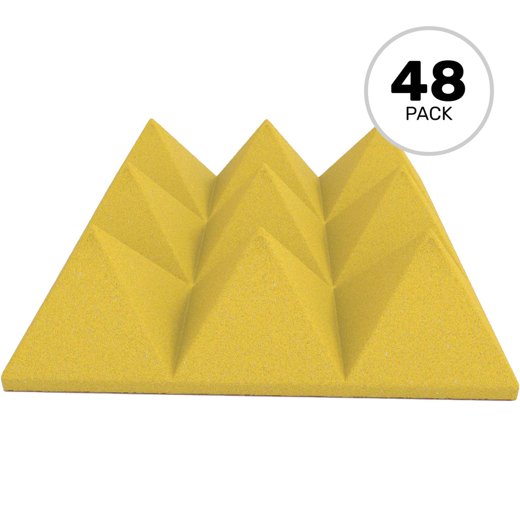 Yellow Colored Acoustic Foam Tile - Pyramid 12" x 12" x 4" - 48 Pack