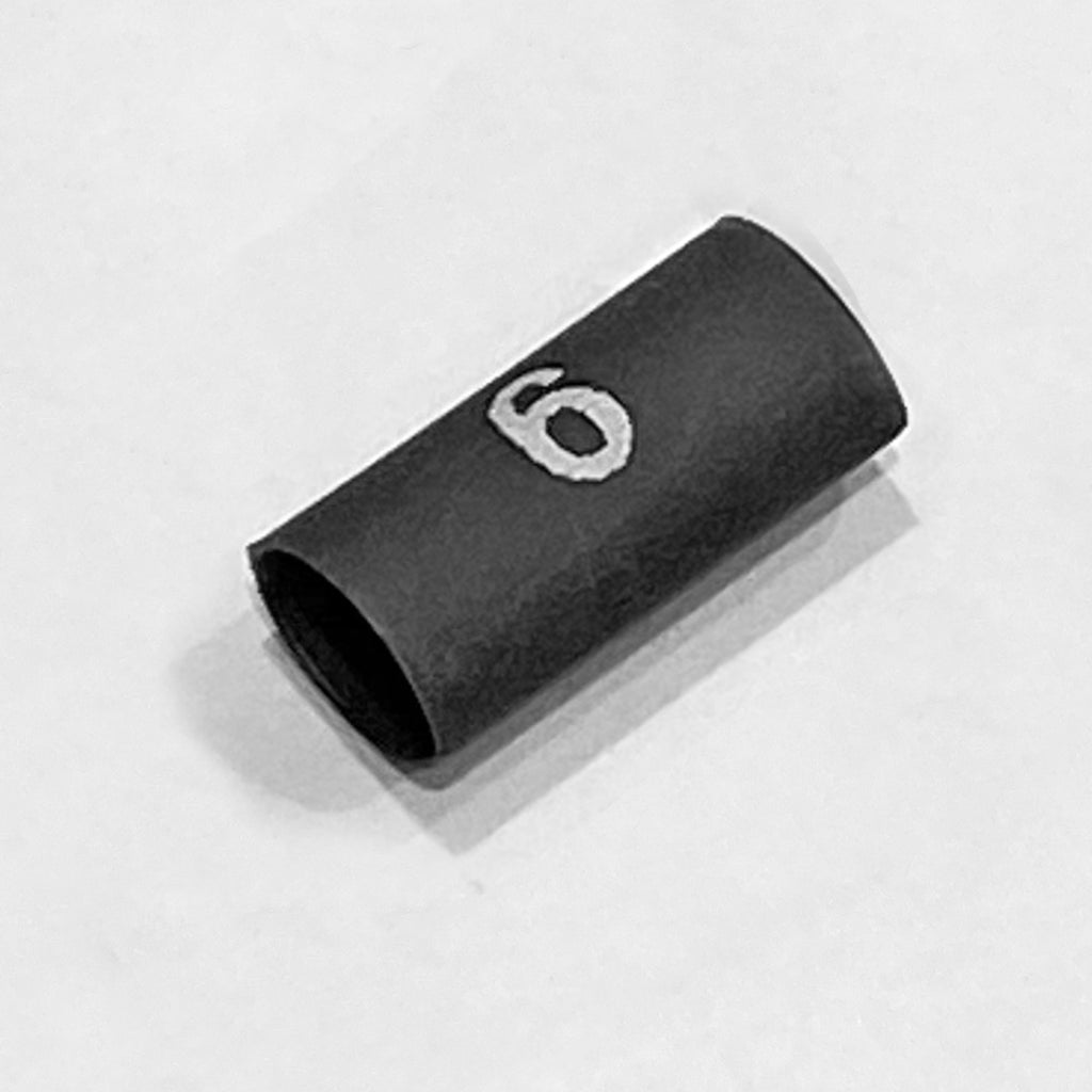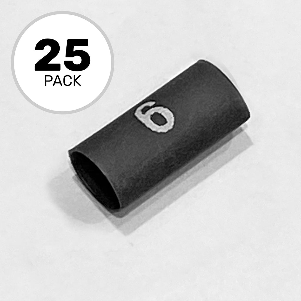 Black 2 to 1 Ratio 3/16" Very Flexible, Flame Retardant Polyolefin Heat Shrink Tube with White Number 6 Printed - Package of 25