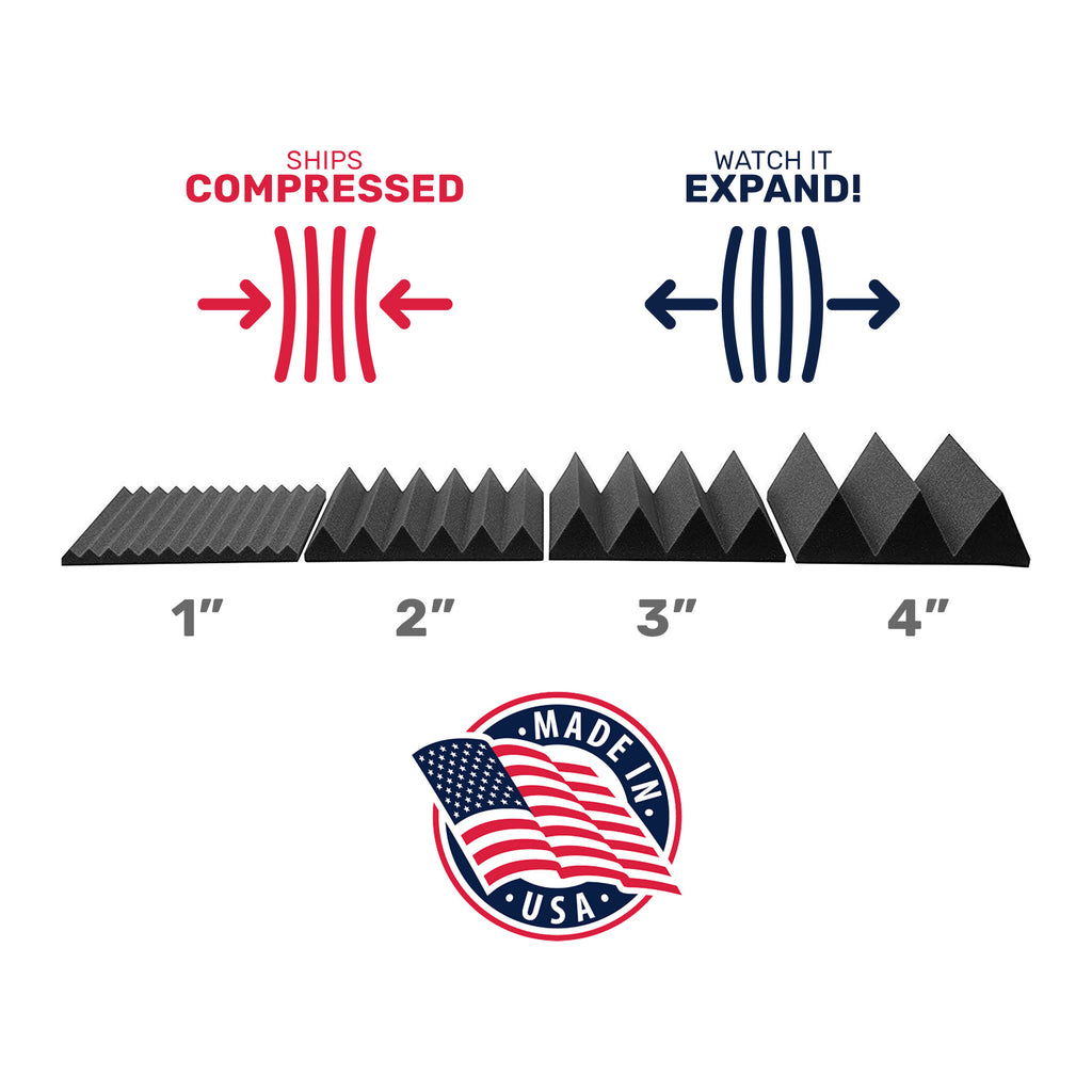 2 inch wedge foam is effective against standing waves and flutter echoes in most small-to-medium sized rooms like vocal booths, control rooms and studios. It also functions as a full frequency bandwidth absorber for any size room when used in conjunction with corner bass absorbers and male/female broadband absorbers.