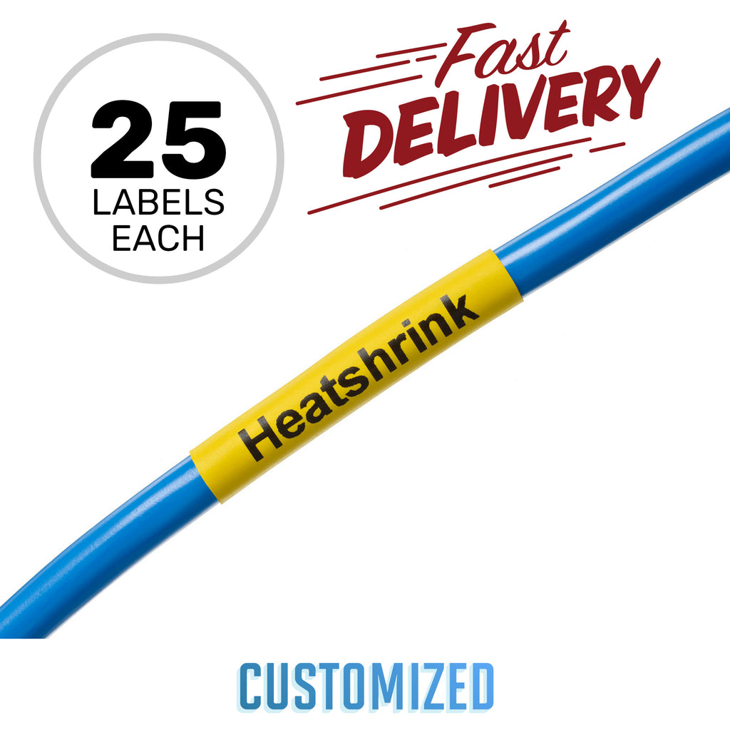 Custom Printed to Your Order 2:1 Heat Shrink Tubing Markers/Labels with 1/4" Preshrunk Diameter - Package of 25 Labels
