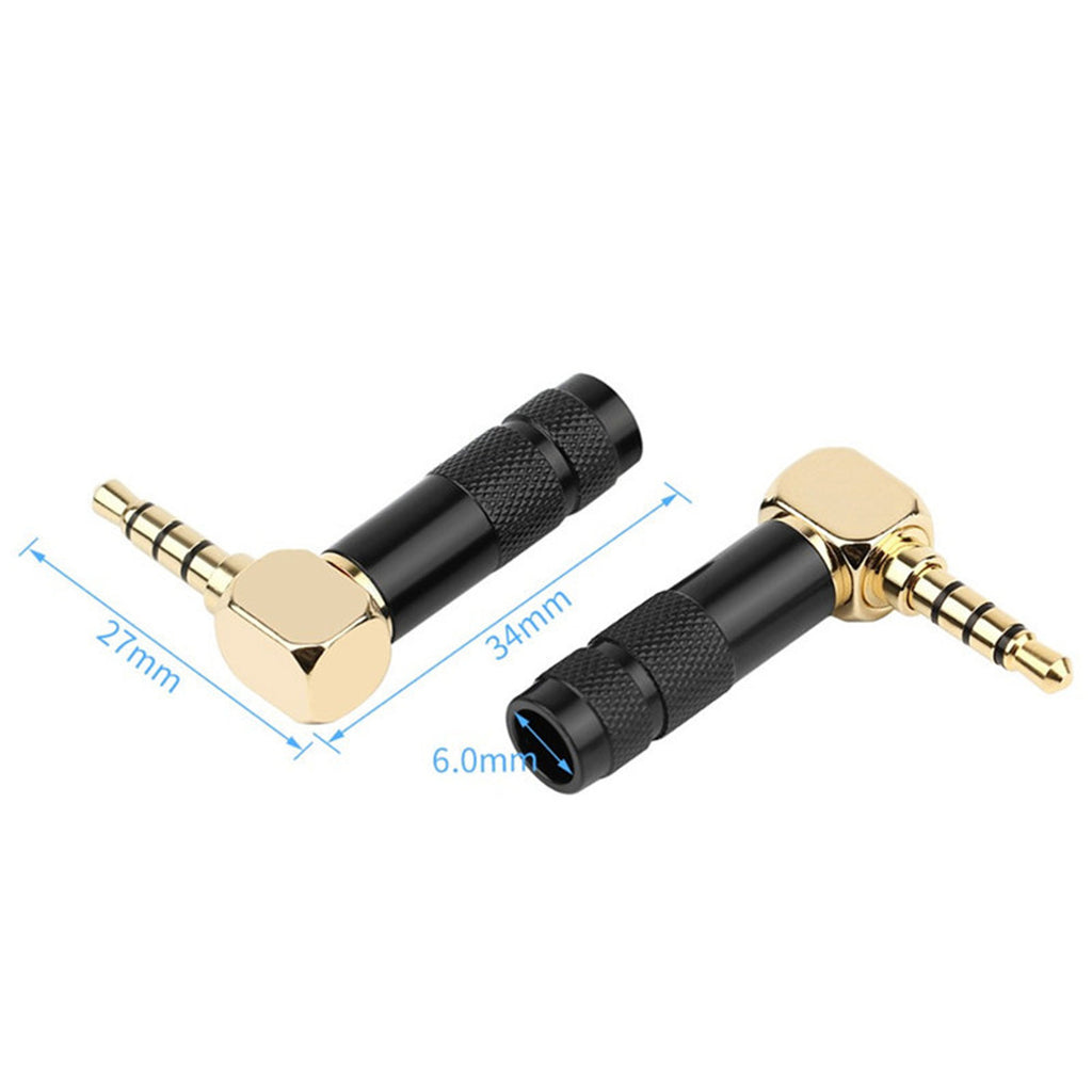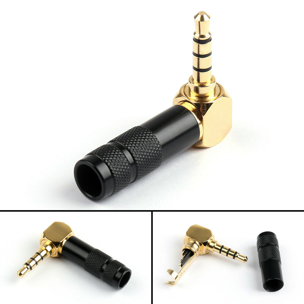 Gold Plated Stereo + Mic 3.5mm 4 Pole TRRS Male Right Angle 90 Degree Solder Connector for 6mm Cable - Black Handle
