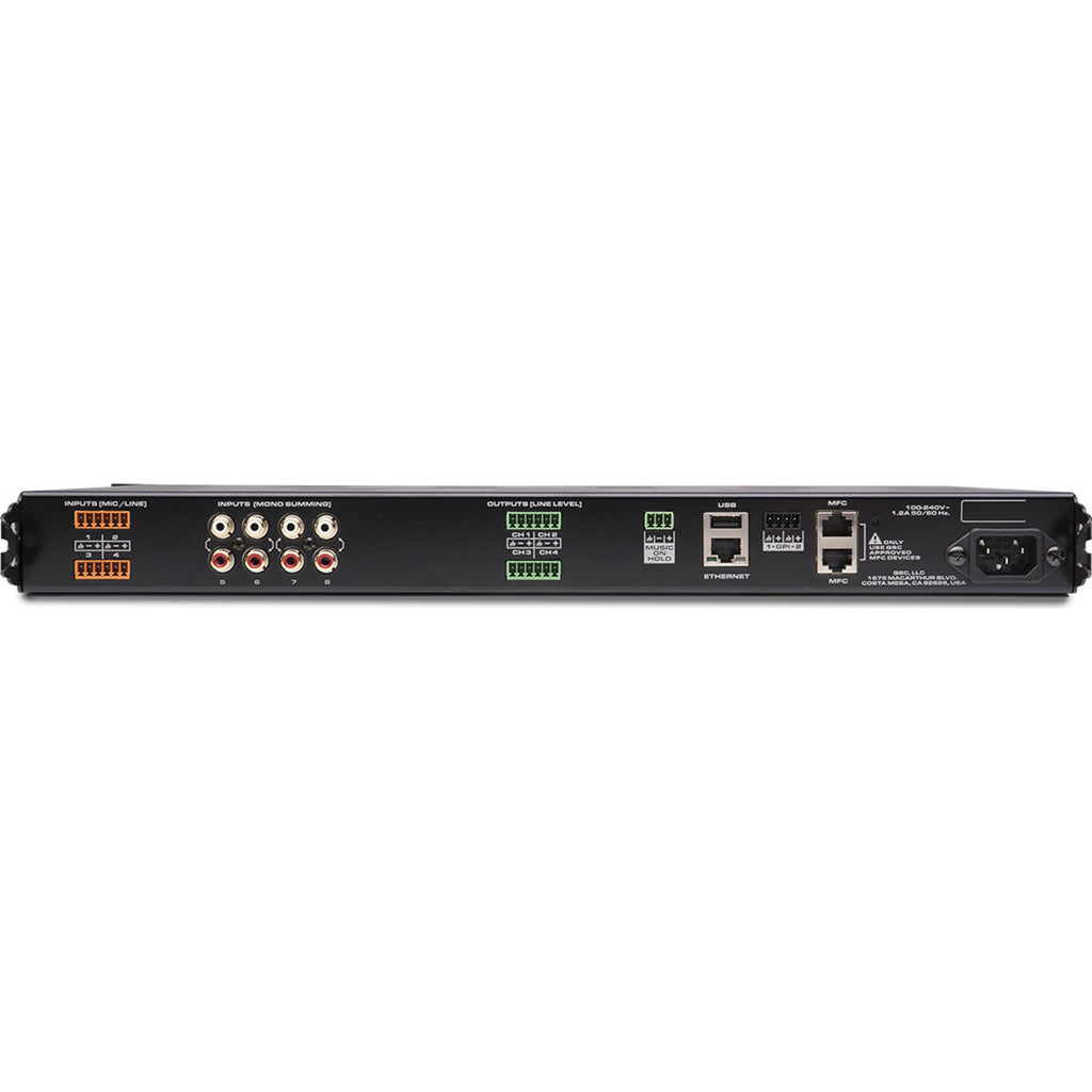 Four Zone Music and Paging Mixer with 4 mic/line Input Channels, 4 Line input channels, 4 Output Zones, USB, and Mobile Apps