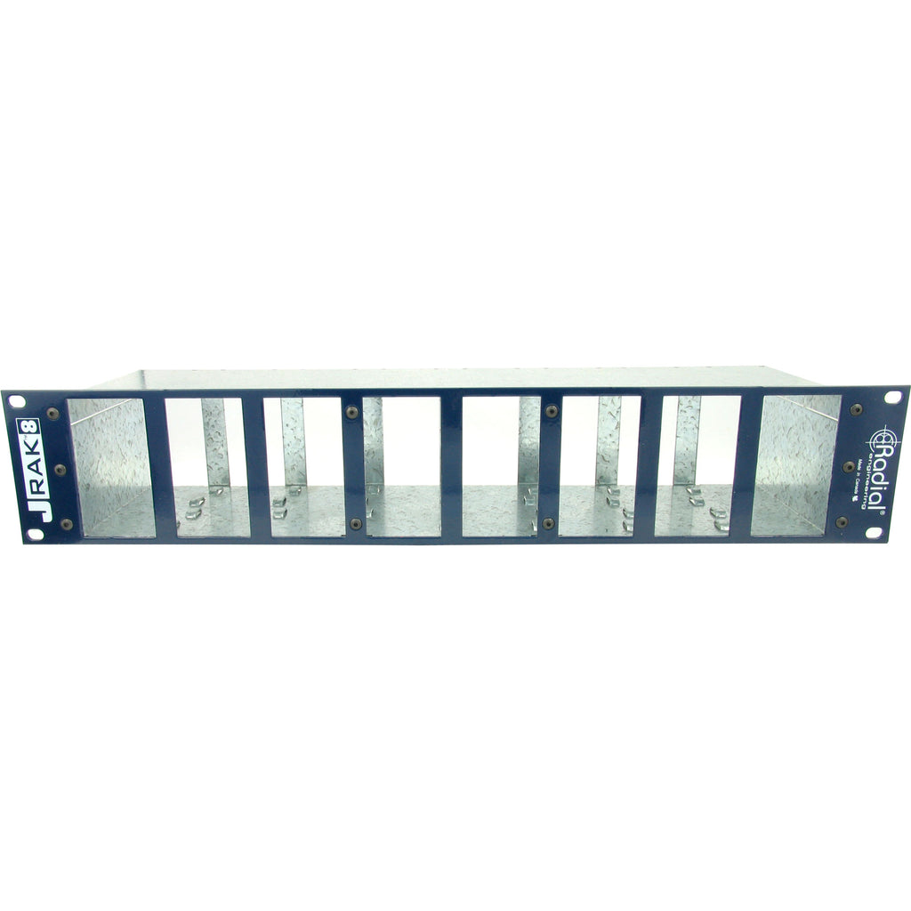 Most Radial direct boxes, splitters, isolators and Reampers may be rack-mounted using either the J-Rak 4 or the J-Rak 8. These enable multiple units to be combined and safely stored for touring or used as part of a permanent installation. Mounting the DIs is easy. You simply remove the outer shell and slide the inner frame into one of the racks.