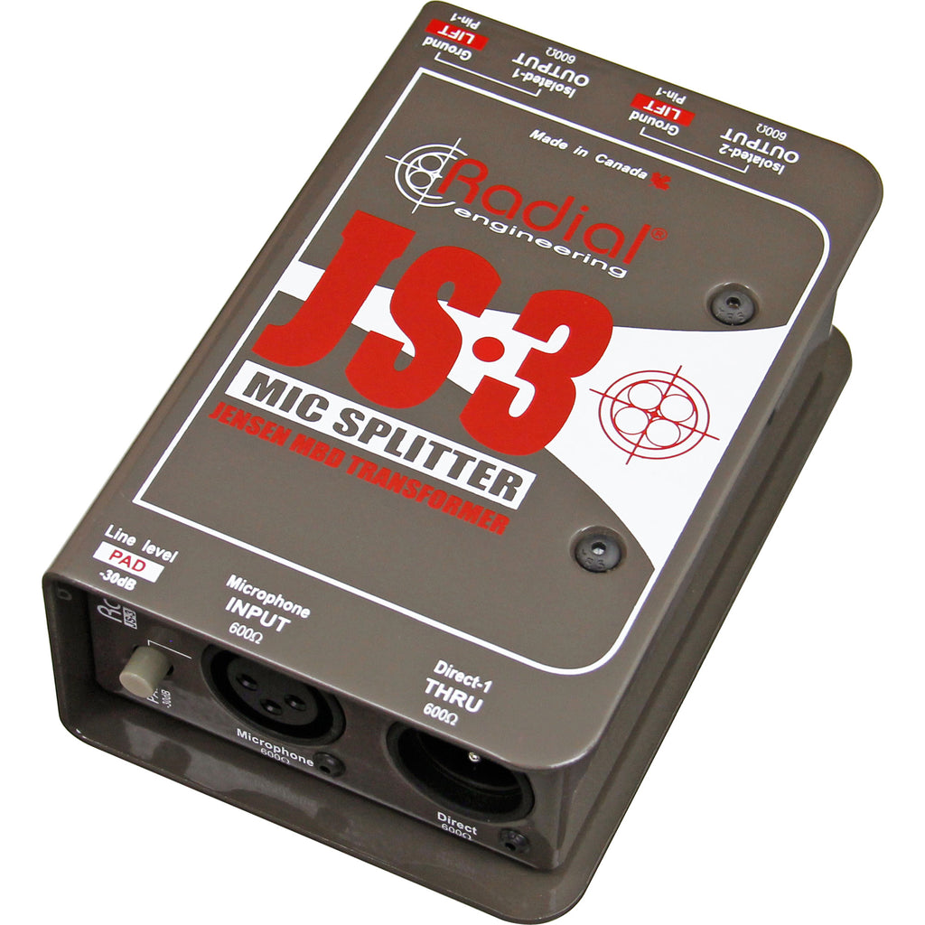 The Radial JS2 and JS3 are high performance balanced mic level splitters that let you to split a signal and feed multiple destinations at the same time. Typical applications include splitting a signal in the studio to feed more than one preamp, feeding a stage mic to more than one mixing console, or even splitting the signal to a live PA during a broadcast event.