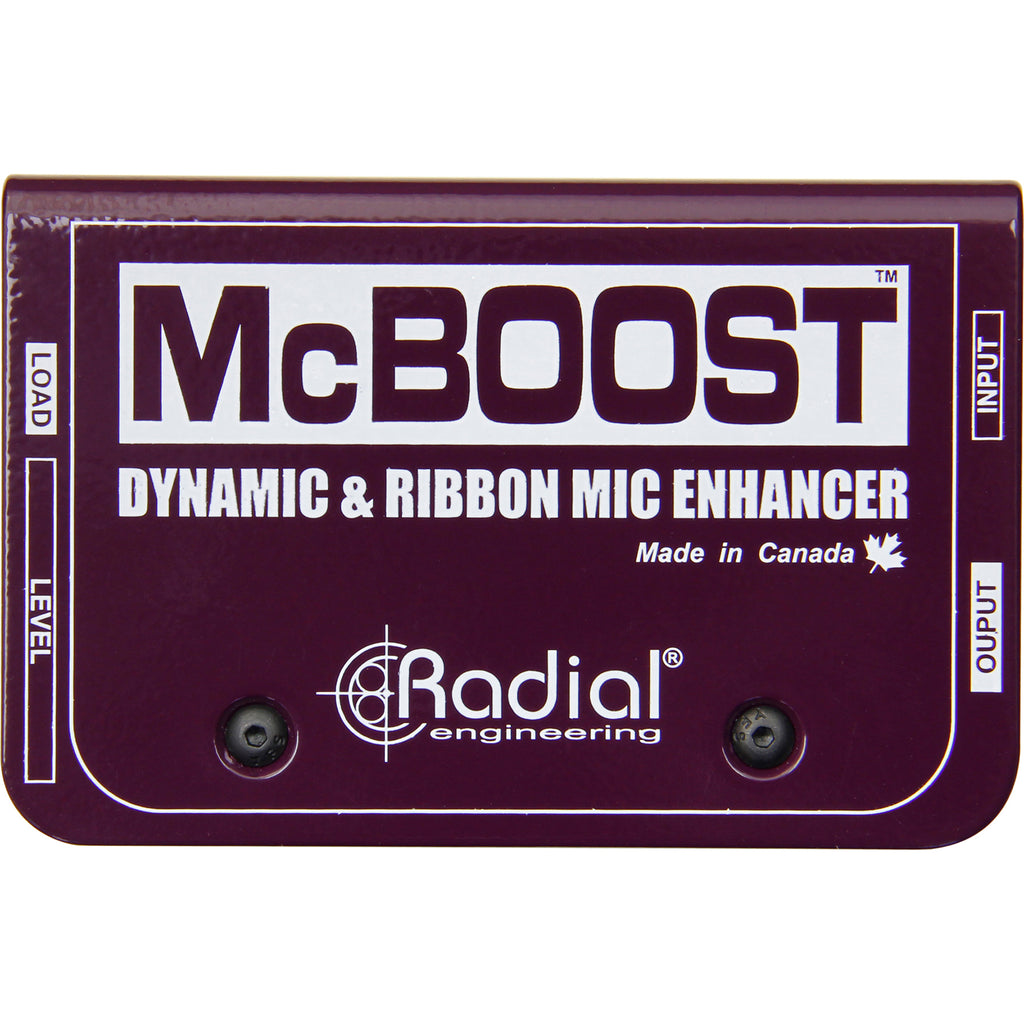 The Radial McBoost is a high performance microphone signal booster designed to elevate the output of a typical dynamic microphone for greater transient response and boost the signal of a low-output ribbon mic to bring it up to a usable level for mixing consoles or preamps that may not provide sufficient gain.