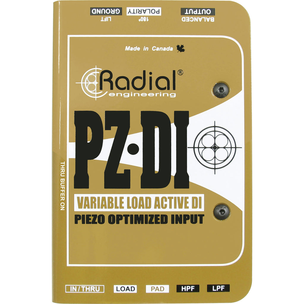 The Radial PZ-DI is a unique direct box that is specifically designed for acoustic and orchestral instruments. Unlike most direct boxes that are limited to a 'one size fits all' design, the PZ-DI lets you properly match the input impedance to the source to optimize the frequency response, dynamics and feel so that no matter what type of pickup you employ, you will enjoy smoother, more musically pleasing results.