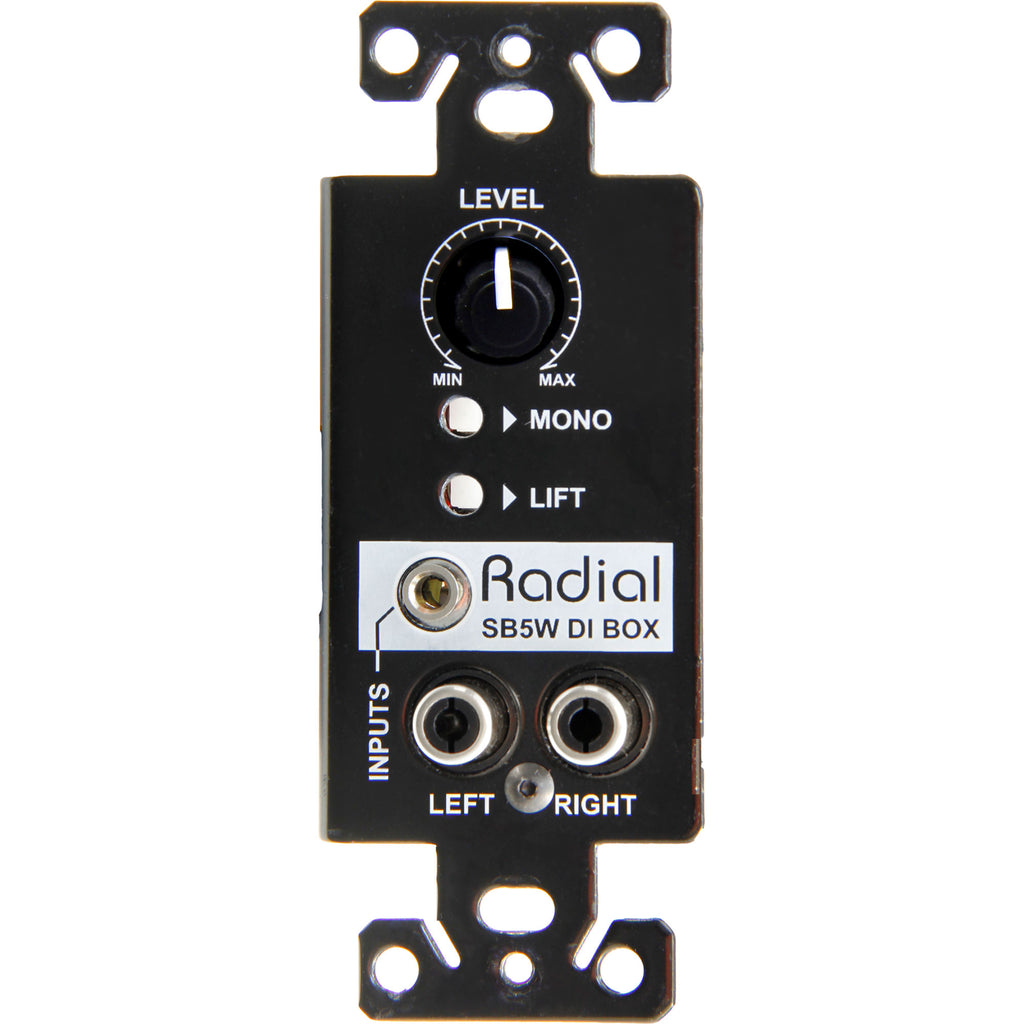 Finished in a durable black powder coat and sized to fit a standard Decora wall plate, the Radial SB5W looks sharp with any color faceplate while providing clear labeling for easy manipulation for the pros and novices alike.